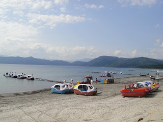 There's a rest stop near the lake,where one can find places to eat and buy souvenirs. Raimie had a very nice goma ice-cream there, and his Mommy and Daddy went on a free food sampling binge in one of the shops.